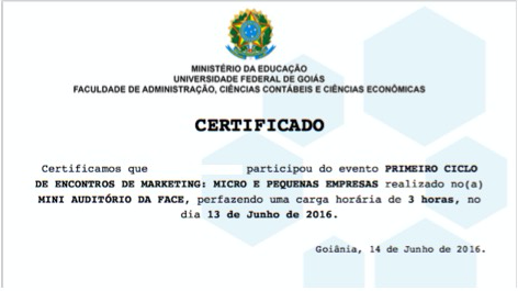 Caso algum participante não tenha recebido, encaminhe um e-mail para admkt.ufg@gmail.com informando o nome completo solicitando o certificado.