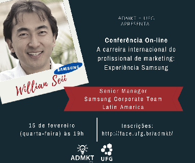 O gestor sênior da Samsung para a América Latina, Willian Seii, é o convidado desta edição para compartilhar com o público sobre sua trajetória profissional na área de marketing, em especial, por suas passagens internacionais na área de inovação e marketing na Samsung na Ásia, Europa e América Latina.