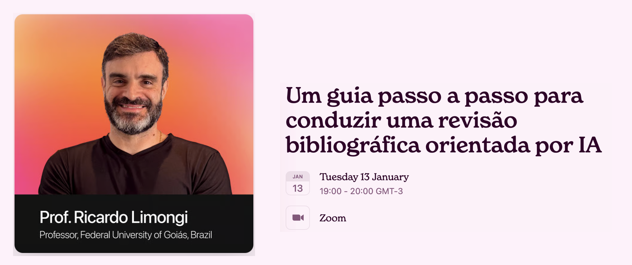 ​Este webinar é indicado para pesquisadores, estudantes de pós-graduação e professores que desejam integrar a IA em seu fluxo de trabalho de pesquisa de forma estruturada, responsável e eficiente.